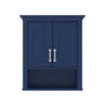 This 24" Aegean Blue Wall Cabinet features recessed panel doors with soft-close hinges and an adjustable interior shelf for hidden storage. An open bottom shelf adds display space, while chrome hardware and crown molding complete its clean, classic look.