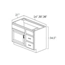 Bristol Chocolate Vanity Combo Base Kitchen Cabinet | Width: 30"/36" | Depth: 21" | Height: 34.5" | 3 Drawers on Right